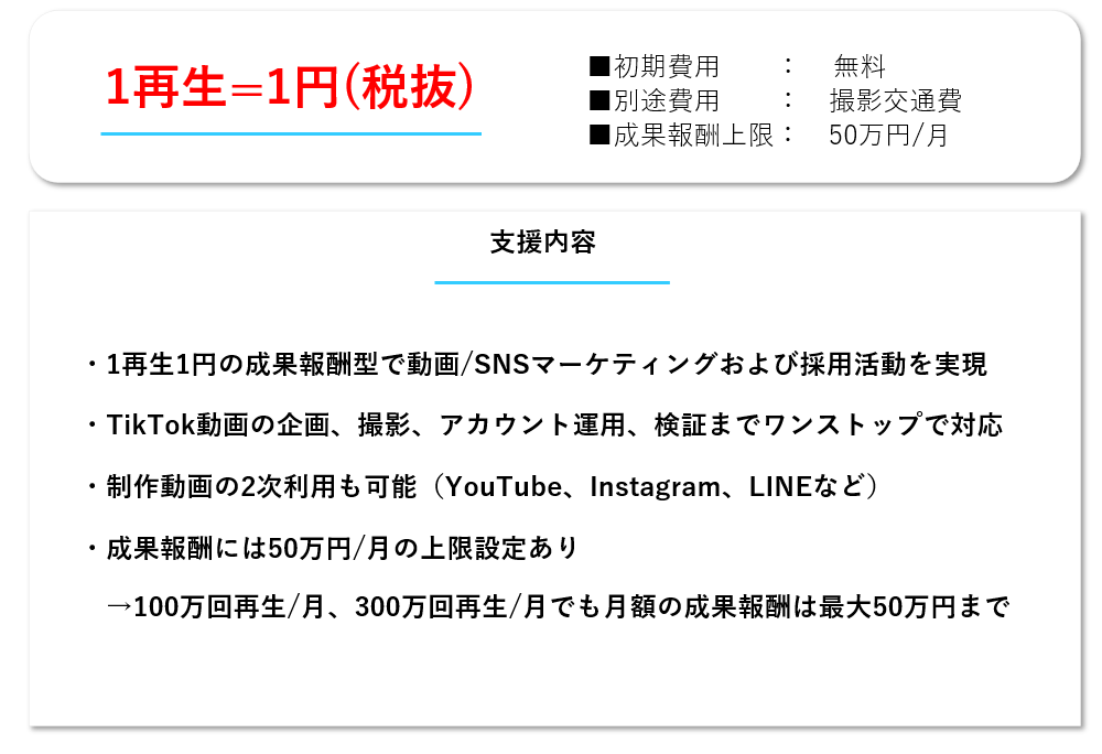 1再生=1円(上限50万円/月)にてリスクなく成果報酬型にてご提供いたします。
